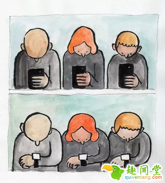法国艺术家Jean Jullien 想必也深受其害,他特别绘制了一组插画讽刺这事儿??赐昃醯茫胝腋鋈?,不带手机,就聊聊天。