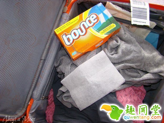 3.将柔软烘衣纸放置行李箱底层可使衣物保持干燥与除臭清香。