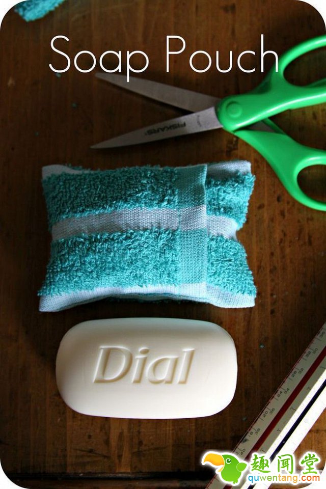 11.用毛巾布DIY肥皂袋,省去带大罐沐浴乳出门的困扰。