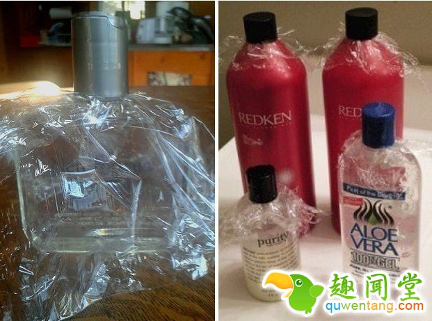 20.盖上液体容器瓶盖前先夹一层保鲜膜,盖紧后试着倒著看看有无溢出,因为通常行李在一阵翻滚碰撞后都不太乐观。