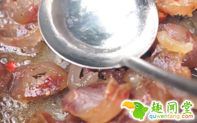 自家做的腊肉在溪水里洗干净干净,然而切成片状。