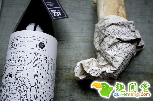 Hrsz. 737瓶子包装设计,包括有两款瓶子包装,一款是受是那老学院的黑白块型样的启发。另一款刚是葡萄园的原生地貌,就是很好的图形。