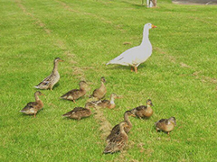 男子发现母鹅呆呆地坐在烧焦的草堆上一动不动,走近抱起母鹅一看,母鹅的毛都被烧焦了,看起来十分可怜!男子起初还不明白为什么这只母鹅怎么挺过熊熊燃烧的火焰的,直到他看到了下一幕。 再一看,男子发现地上有一堆鹅蛋,这时男子才恍然大悟,原来这只母鹅是为了?;に亩斓?!这鹅妈妈是为了?;ぷ约何闯鍪赖暮⒆硬磐蠡鸬?!真是一只伟大的鹅妈妈......