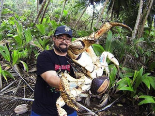 据英国媒体报道,一名游客在印度洋的圣诞岛上遇到一只巨大的椰子蟹,他还大胆地把螃蟹举起来拍照留念。 椰子蟹是一种寄居蟹,体型硕大,体重最高可达6千克,是现存最大型的陆生节肢动物。椰子蟹的外壳坚硬,有两只强壮有力的巨螯,是爬树高手,尤其善于攀爬笔直的椰子树。 因为它们可以用强壮的双螯剥开坚硬的椰子壳,以吃其中的椰子果肉而得名。......