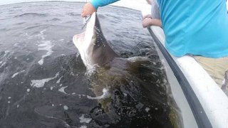 美国渔民放生误捕鲨鱼 手指险些被咬断