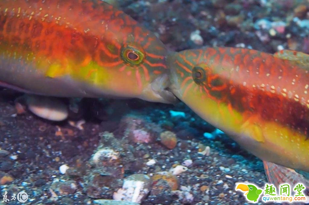 乍看这组图你是不是也被这两条当众玩亲亲的隆头鱼虐到了?