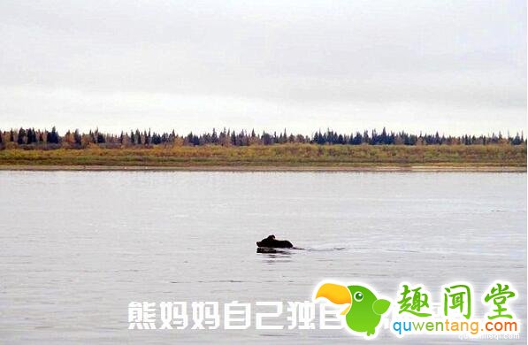 他相信,这只熊妈妈是故意选择叶尼塞河与它的熊孩子诀别,因为牠知道这对只有约一岁半的熊孩子们仍未具备潜水的能力。