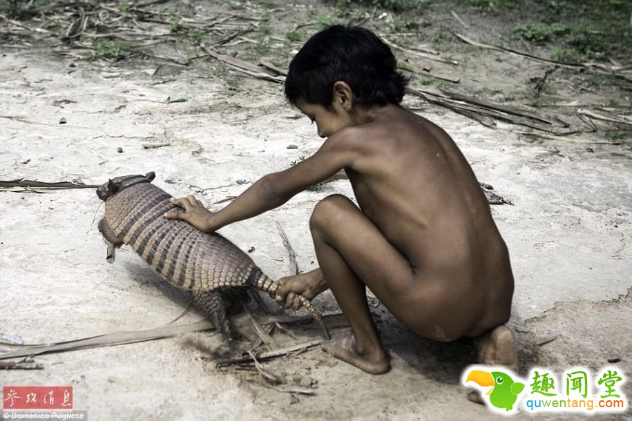 在巴西东部的热带雨林中居住着世界上最濒危的部落——阿佤族。他们会带着所拥有的一切在深林里穿梭。但是这个古老的部落的许多族人被欧洲殖民者奴役,又遭到非法牧场主驱赶。500年前,有1万名阿佤族的族人在巴西的马拉尼昂州(Maranhao state)定居,而现在仅仅只有300人还生活在这里。阿佤族的族人非常热爱动物,把它们当成亲人对待,女人们甚至会用自己的母乳来喂养小松鼠。动物们似乎也懂得回馈,每天都会帮助他们打开坚果的外壳或者从高处把水果摘下来。现在已经很少有人能够遇到阿佤族部落了,摄影师Domenico Pugliese则很幸运的拍下了他们的日常。