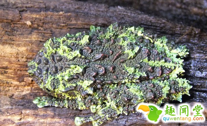 越南棱皮树蛙原产于越南北部的深山中,首次发现于1903年。它的皮肤棕绿相间,好似披着一层苔藓,堪称自然界的“伪装大师”。