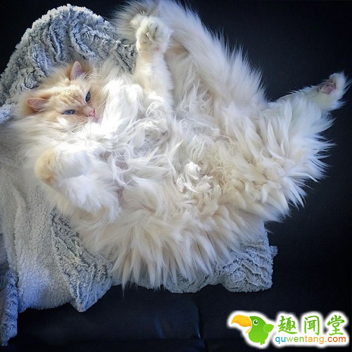 这只猫平时喜欢躺在铲屎官的床上,要么伪装成一个巨大的蓬松的枕头,要么把自己埋在自己厚厚的毛毛里面。毛球控们快来收图~