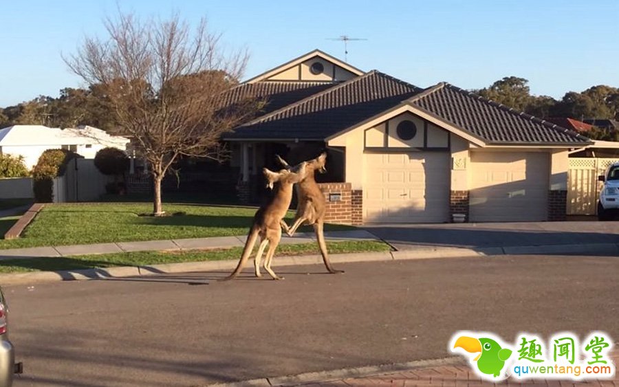 据外媒日前报道,普通人街头打架经常见,但是两只袋鼠在光天化日下当街大打出手就有些少见了。近日,有人拍到两只成年雄性袋鼠在澳大利亚新南威尔士州的大街上公然斗殴五分钟。