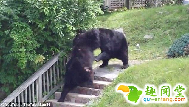 两头巨大的黑熊被拍到在新泽西州一个安静的住宅社区上当街“斗殴”,战况激烈。在打斗中,这两头熊从一个长满草的小坡上滚了下来,停在了街道上,却并没有停止打架。它们只是把“战场”转移到街头,继续撕咬和扭打。
