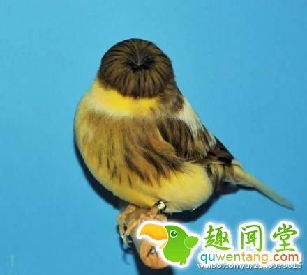 这种有着西瓜太郎一样发型的鸟,学名叫格洛斯特金丝雀(Gloster Canary),因为长有奇特的羽冠又被成为“披头士鸟,锅盖头金丝雀”。1920年由一位英国的老太太首次培育出来的,简直堪称是鸟界洗剪吹里最完美的bowl cut。