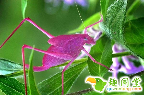 螽斯也叫纺织娘,并不稀奇,大多是绿色或褐色的。但美国宾夕法尼亚山区的这种螽斯却非常特别,从头到脚都是鲜艳的粉红色!这一品种第一次被发现是在1887年,科学家认为是异常色素沉着的症候,与白化病类似。
