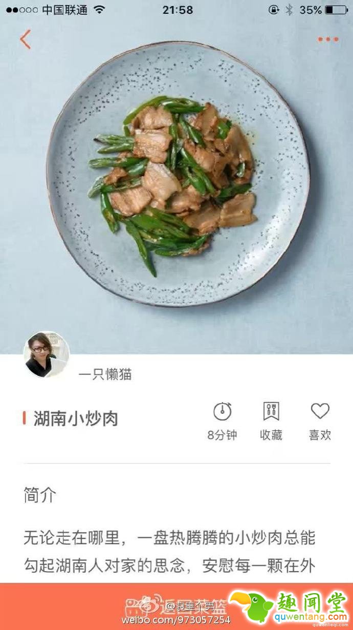 博主拿湖南小炒肉做了一个示范,app上显示用时需要8分钟,还附了一段“鸡汤”式的简介hhhhh~