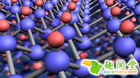 一个正在收集氢气的石墨烯晶体的分子结构,每个(蓝色的)碳原子都依附着(红色的)氢原子。图片来源:网络