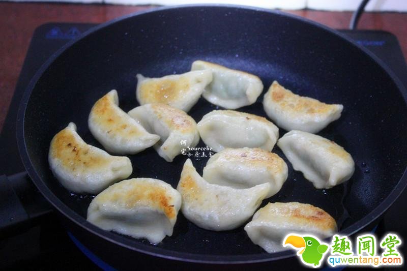 7.饺子可以360度无死角的煎至金灿灿,撒上香葱,即可出锅。