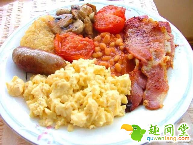 English breakfast,又叫full breakfast,其实摸着良心说,还算挺丰盛的。很多人甚至拿它当早午餐或者午晚餐,不能缺少的元素就是蛋和肉,当然还有标志性的罐头豆子_(:з」∠)_