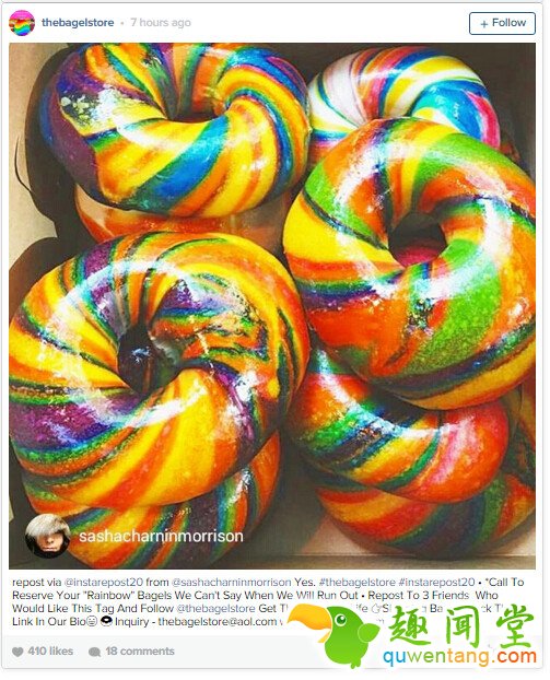 彩虹贝果风靡布鲁克林 或成下股美食旋风