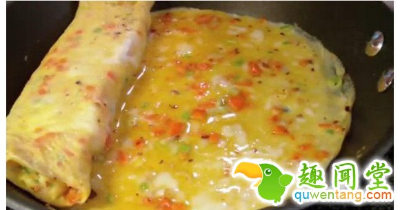 4. 煎蛋饼。(蛋液不要全部用完,留少许一会有用)