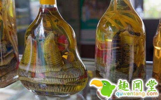 蛇酒在中国大陆和越南等国大受欢迎,人们认为此酒有滋补的功效。它是将蛇浸泡在黄酒里制成的,或是用蛇的体液与酒混合制成,如蛇血和酒。
