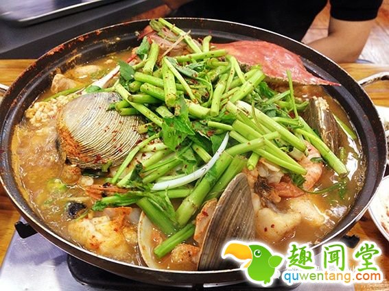 部队汤是我日常必备,便宜又好吃。模样很像辣火锅,但是味道很特别.虽然每次吃完身上都沾满了那种味道,但是真的觉得很好吃.还可以加胶原蛋白,适合女生~   虽然超市也有卖冷冻包装,但缩水实在无比严重。 如果能买到好的酱料,自己做也可以。