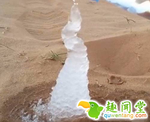 谁知道出现了神奇的一幕,水并没有渗透到沙子里,而是结成了冰,这让许多人不可思议!