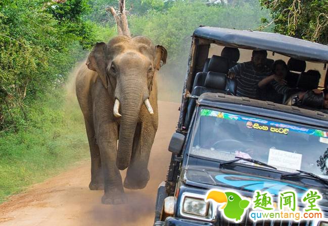 斯里兰卡一大象偷袭游客求食几乎掀翻览车(2)