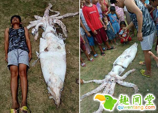 菲律宾渔民捕到2.5米巨型鱿鱼 通体明亮洁白