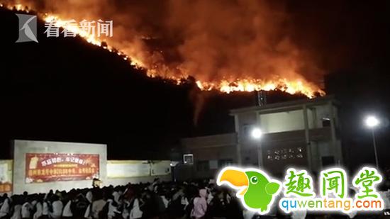 整座山都在燃烧 山下学校仍淡定开中考动员会