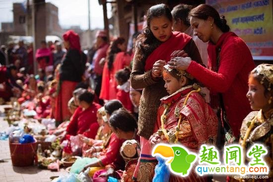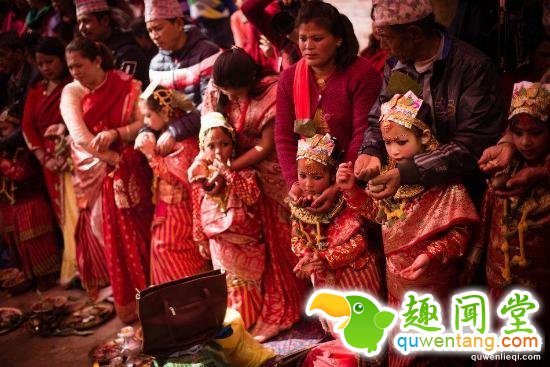 在尼泊尔,当地的尼瓦尔族人会举行一种奇特婚俗,被称为贝尔果婚。