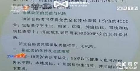 其实啊,这屎是捐来治病的!这是广州市第一人民医院正在尝试的一种治疗方法。合格提供者每次可获200元补助!如果初筛合格,更可获得免费全套体检套餐!
