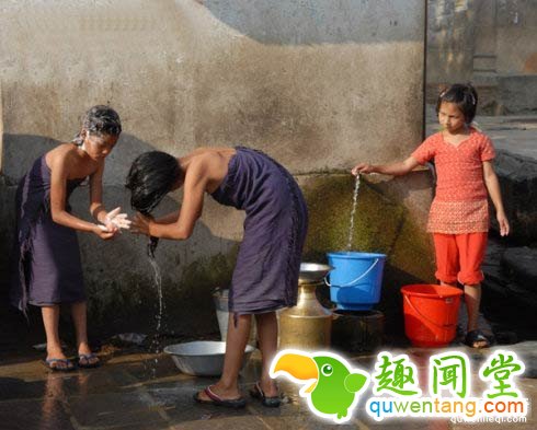 尼泊尔有一个奇特的洗浴文化——户外洗浴。在这里无论男女老少,男人还是女人都会在街边大露天一起洗澡。但是男人早已对这种情况视而不见,见怪不怪了。
