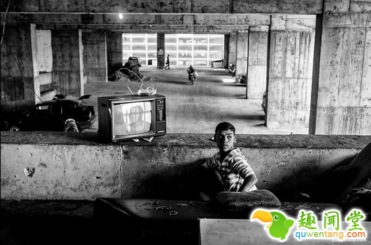 图为,一群贫困孩子正在顶楼肆无忌惮的玩耍,这是他们每天游戏的地点。虽然环境很一般但是在这里,风景确实很好,而且也很少有人管。