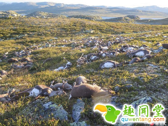 29日在挪威南方哈当尔高塬(Hardangervidda)发现322头野生驯鹿遭雷击死亡,尸体相连遍佈约有一个操场的大小。挪威自然监察署(SNO)发言人克努特(Knut Nylend)说,「以前从未看过如此惊人的现象?!构倍哕淮蟛糠菔粲诠惫夜?,后者面积达3422平方公里,北欧最大的野生驯鹿族群在此活动。