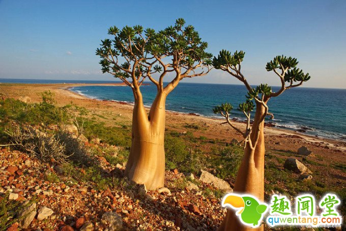 索科特拉岛的名字来自梵语,意为“极乐岛”。它位于阿拉伯半岛以南约350公里,阿拉伯海与亚丁湾的交接处,由4座小岛和2座岩石小岛组成,隶属于也门。在索科特拉岛上生存着800多种奇特稀有的植物群和动物群,其中更有三分之一的物种是索科特拉岛所独有的。