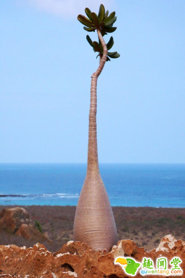 因为远离大陆文明,岛上居民的生活仍然非常原始。这座小岛被联合国列入世界遗产,直到5年前岛上才修了第一条公路。这种原始化生活带来的问题就是岛上居民普遍教育程度偏低,流行早婚和近亲通婚的习惯。岛上妇女一生中一般要生育5-10个孩子,有的多达15-20个。图为瓶子树。