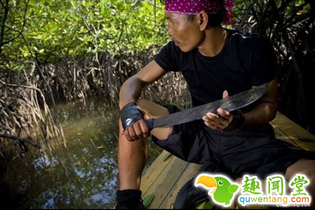 摄影者冒险实拍世界上最穷的海盗,坐木船背柴刀,劫掠过往商船