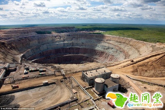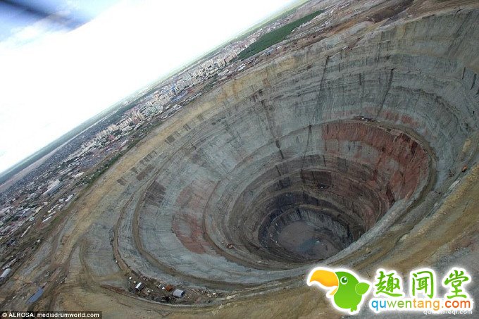 这个巨大的钻石矿有524米深,直径约为1609米,火山口一样的形状使它看上去仿佛被陨石砸中一般。