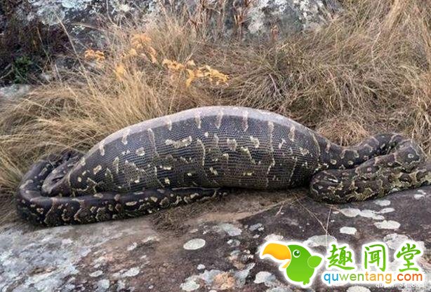 不过在不久前,非洲的大草原上却出现了这样一幕:一条大岩蟒离奇的死亡了,而且它的肚子很明显是刚吃下了什么东西。