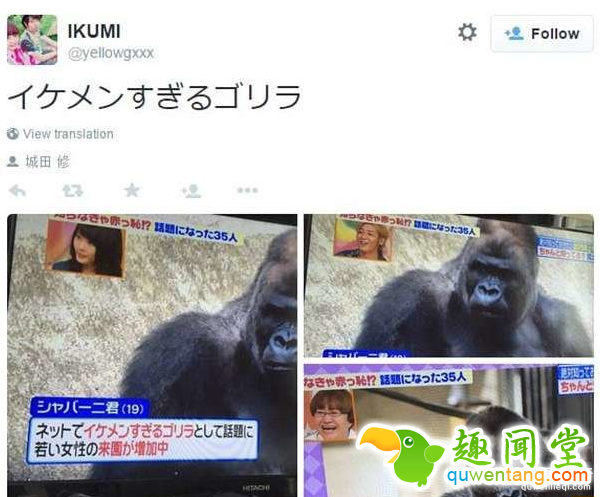 日本网友看到有关它的报导,忍不住惊叹:“这只黑猩猩实在帅过头了!”