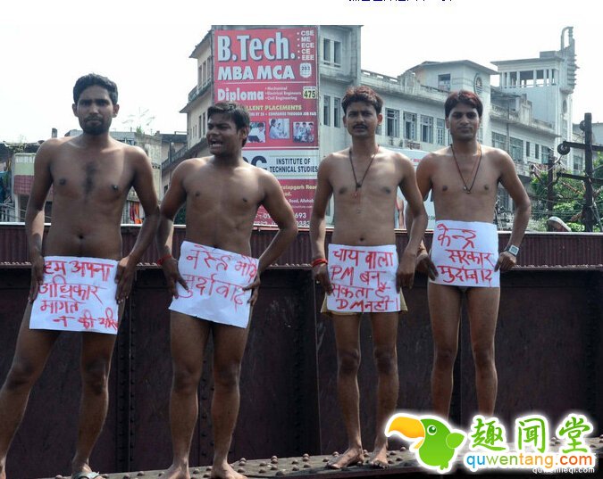 图为印度学生反对公务员考试。印度的公务员待遇非常好,估计这几个孩子是学渣。