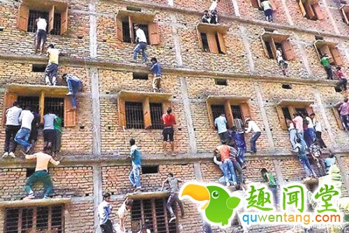 图为印度的中学生考试,看起来十分正规,不过要和下图连着看。