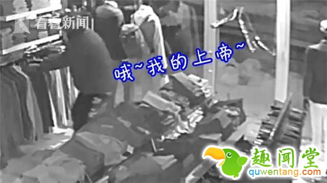 之后,小偷便拿起一块砖头砸碎了一家服装店的玻璃窗户,破窗而入偷走一堆男士上衣和裤子后扬长而去。