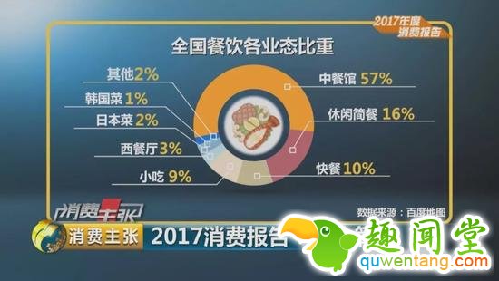 中国烹饪协会发布的《2017年度美食消费报告》显示,2017年,中式正餐仍占据强势主导地位,市场份额最高,占到一半以上,占57%。
