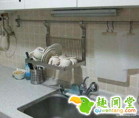 ▼6.安装一个这样的沥水架,不用把碗都堆在柜面上。
