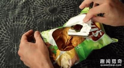 ▼桶装洋芋片让你有些费劲,把A4纸对摺放进去,洋芋片就通通完整的取出来,是不是很神奇?