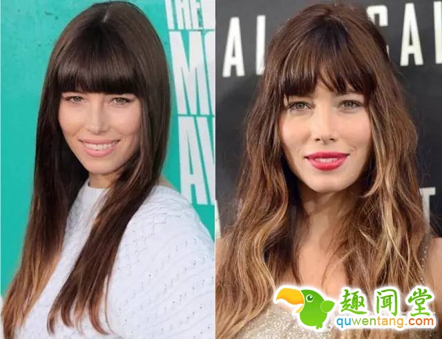 有一段时间是特别的流行厚重的齐刘海,Jessica Biel曾经也剪过,但厚重的齐刘海并不适合她,反倒是换成空气感的刘海,不仅修饰脸型,还让Jessica Biel看起来年轻了不少,还有一个亮点就是深入浅渐变的发色,时髦度超高。