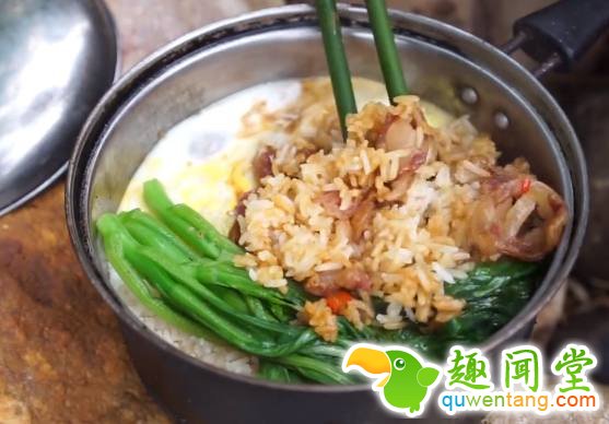农村小伙小溪边做饭,用自家的腊肉做的广东煲仔饭,你想吃吗?(2)