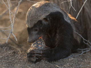 壳硬乌龟遭蜜獾捕食 瞬间被咬碎